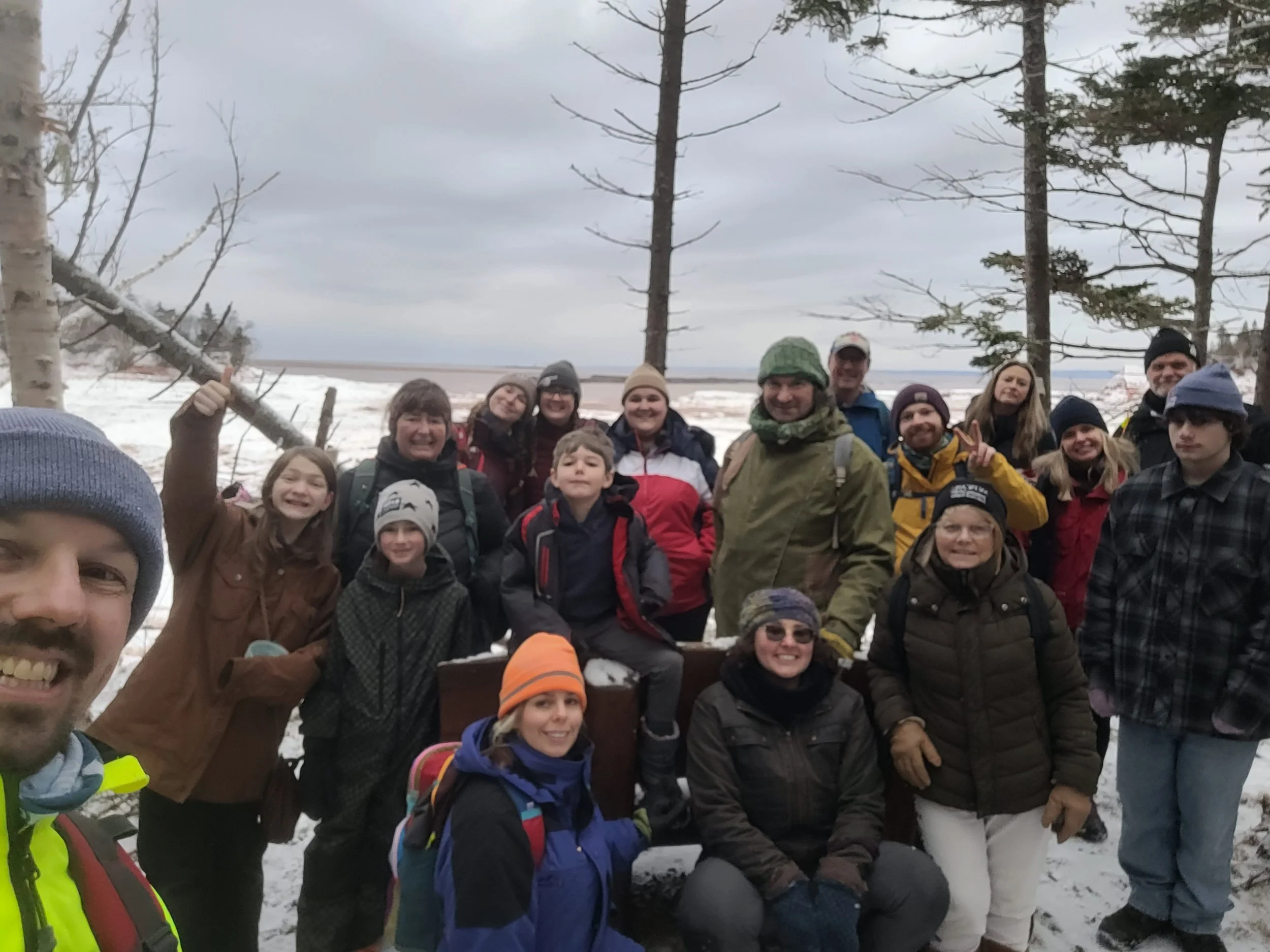Each year, the Cliffs of Fundy Geopark partners with Hike Nova Scotia to provide FREE guided hikes throughout the season in Sɨpekne'katik, where the Geopark is located. This winter, our first guided hike in January began with a gathering at the trailhead for Thomas Cove Coastal Reserve, a Cliffs of Fundy geosite in Keno'mi (Economy, NS).